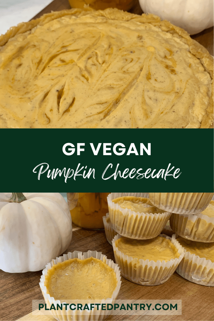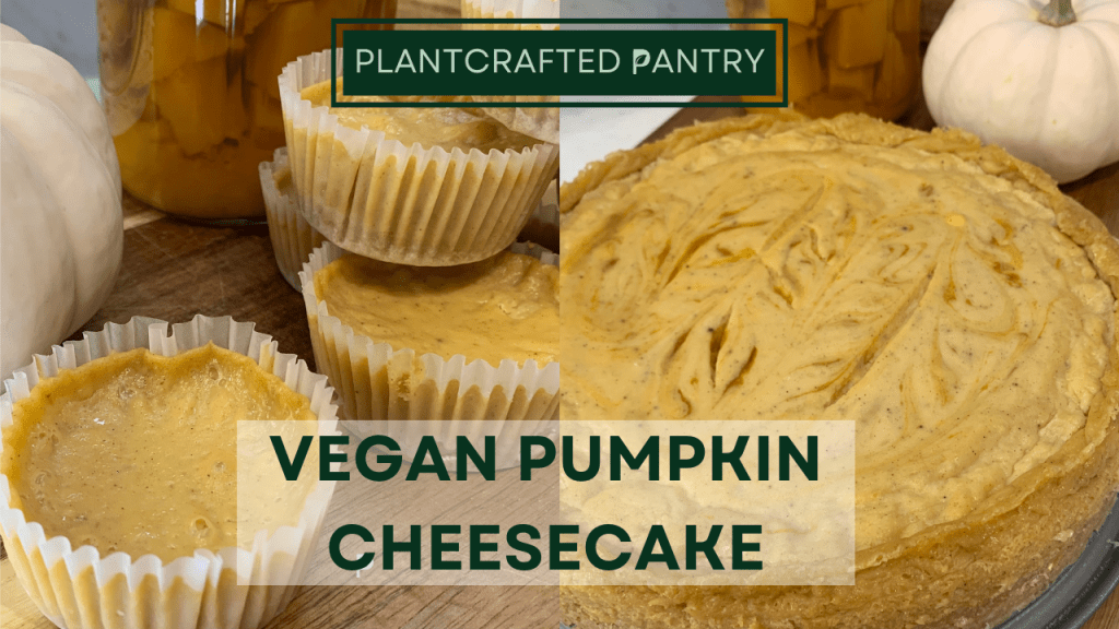I have been making a vegan pumpkin cheesecake for years now, and it’s always a big hit even with non-vegans. This year I used my home-canned butternut squash for the “pumpkin”, and adapted the recipe to individual bites as well, so you’ll find the recipes for both the full-sized cheesecake and the individual bite versions below.